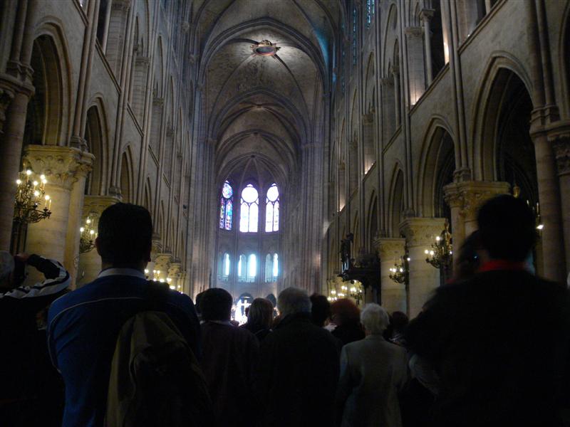 Notre-Dame on viisilaivainen Goottilaistyylinen katedraali. Sen sisätiloilla on pituutta 130 metriä, leveyttä 48 metriä ja korkeus lattiasta kattoon on 35 metriä.