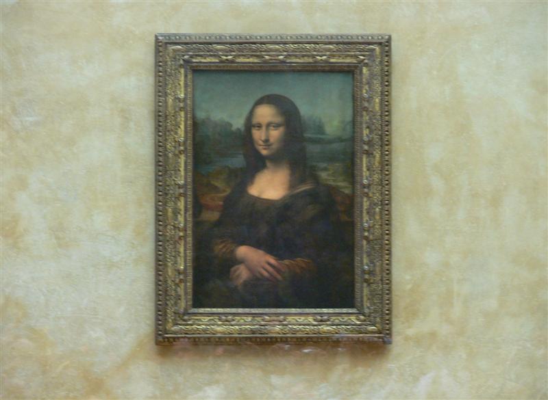 Mona LisaMona Lisa (La Gioconda) on Leonardo da Vincin puulevylle tehty, ehkäpä maailman tunnetuin öljyvärimaalaus (77 x 53 cm). Leonardo alkoi maalata Mona Lisaa vuonna 1503 ja sai sen valmiiksi neljä vuotta myöhemmin. Nykyään maalaus on Louvren museossa.Huomaa taustan vasen puoli, joka on aavistuksen alempana, ja saa Mona Lisan näyttämään pidemmältä katseen keskittyessä vasempaan puoliskoon. Kuva on otettu n. 8 metrin päästä (lähemmäs ei päässyt) rakkaan vaimon olkapää tukena. |